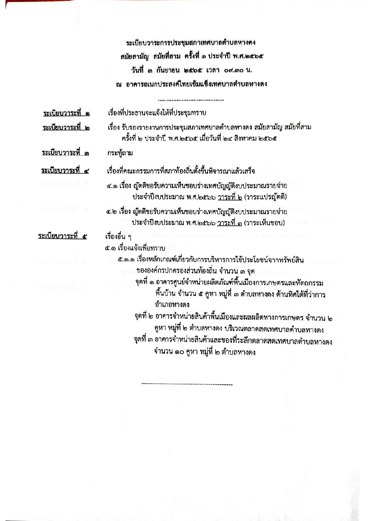 ระเบียบวาระการประชุมสภาเทศบาลตำบลหางดง สมัยสามัญ สมัยที่สาม ครั้งที่ 3 ประจำปี 2565