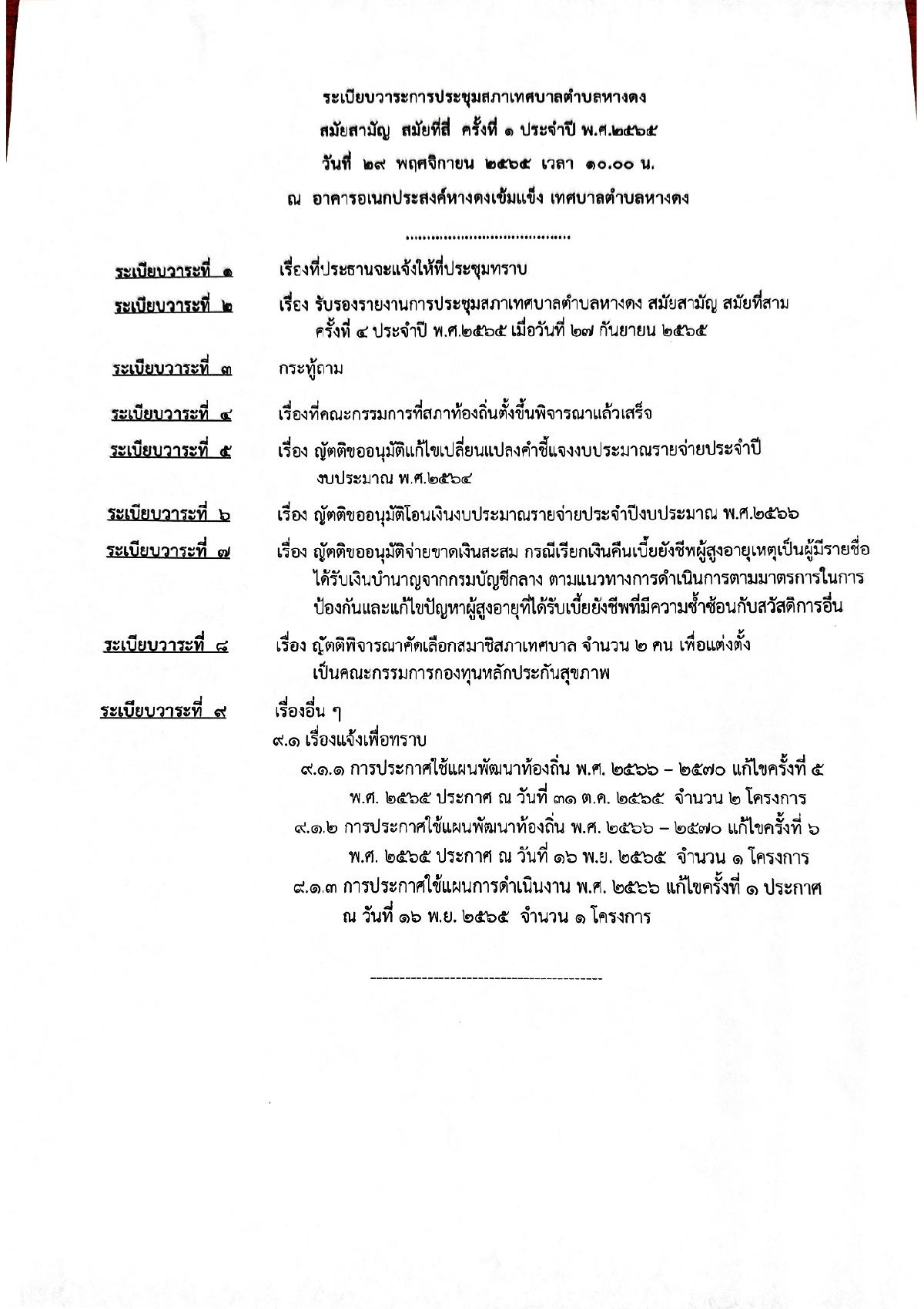 ระเบียบวาระการประชุมสภาเทศบาลตำบลหางดง สมัยสามัญ สมัยที่สี่ ครั้งที่ 1 ประจำปี 2565