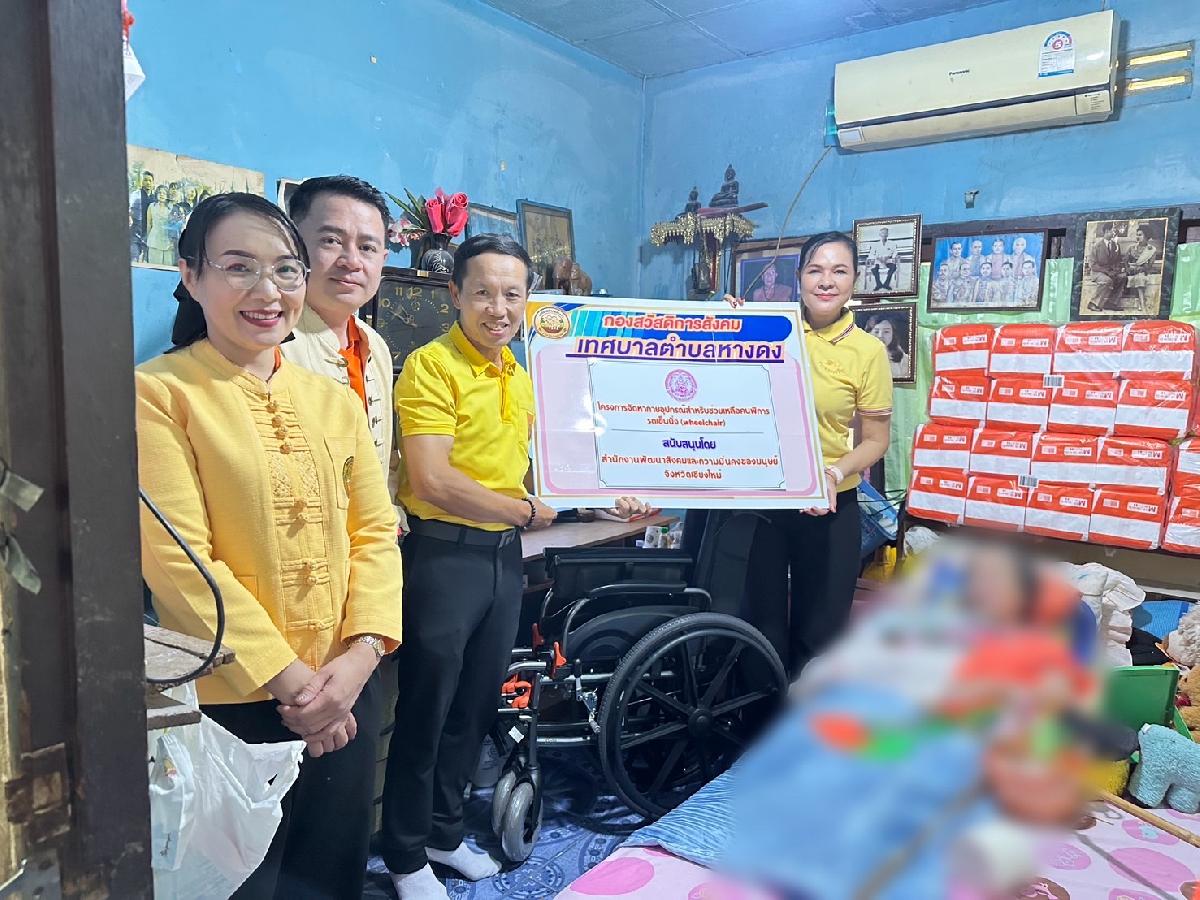 24 กรกฎาคม 2568 เทศบาลตำบลหางดง โดย นายแสวง ใบงิ้ว นายกเทศมนตรีตำบลหางดง มอบหมายให้ นางจันทร์ฉาย ใบงิ้ว รองนายกเทศมนตรีตำบลหางดง พร้อม หัวหน้าส่วนราชการ ผอ.กองสาธารณสุขและสิ่งแวดล้อม หัวหน้าฝ่ายกองสวัสดิการสังคม เจ้าหน้าที่กองสวัสดิการสังคม,เจ้าหน้าที่กองสาธารณสุขและสิ่งแวดล้อม นำกายอุปกรณ์เพื่อช่วยเหลือคนพิการไปมอบให้กับผู้พิการในพื้นที่ ตามโครงการจัดหากายอุปกรณ์สำหรับช่วยเหลือคนพิการ รถเข็นนั่่ง (Wheelchair) ซึ่งได้รับการสนับสนุนจากสำนักงานพัฒนาสังคมและความมั่นคงของมนุษย์จังหวัดเชียงใหม่ จำนวน 3 ราย