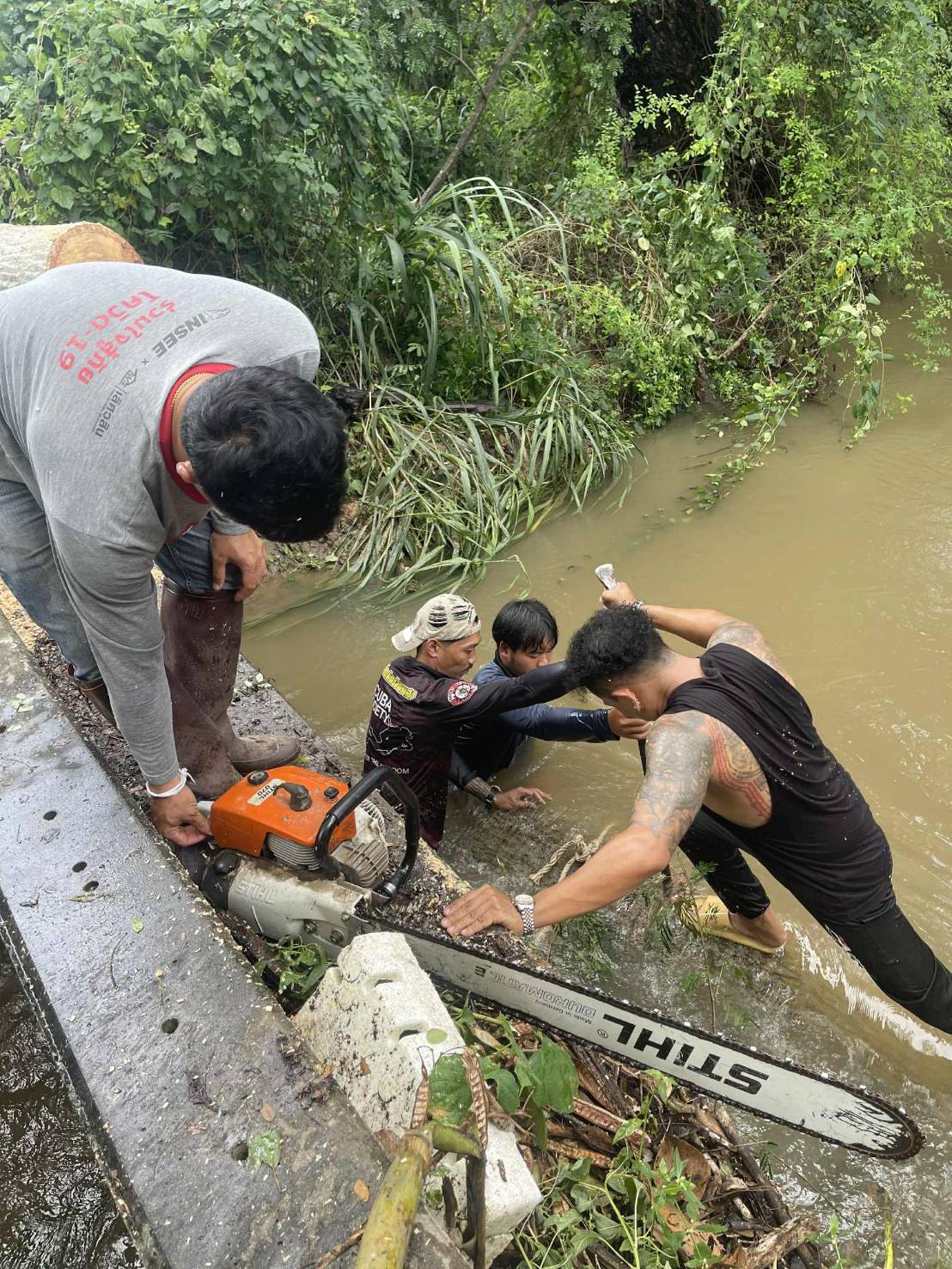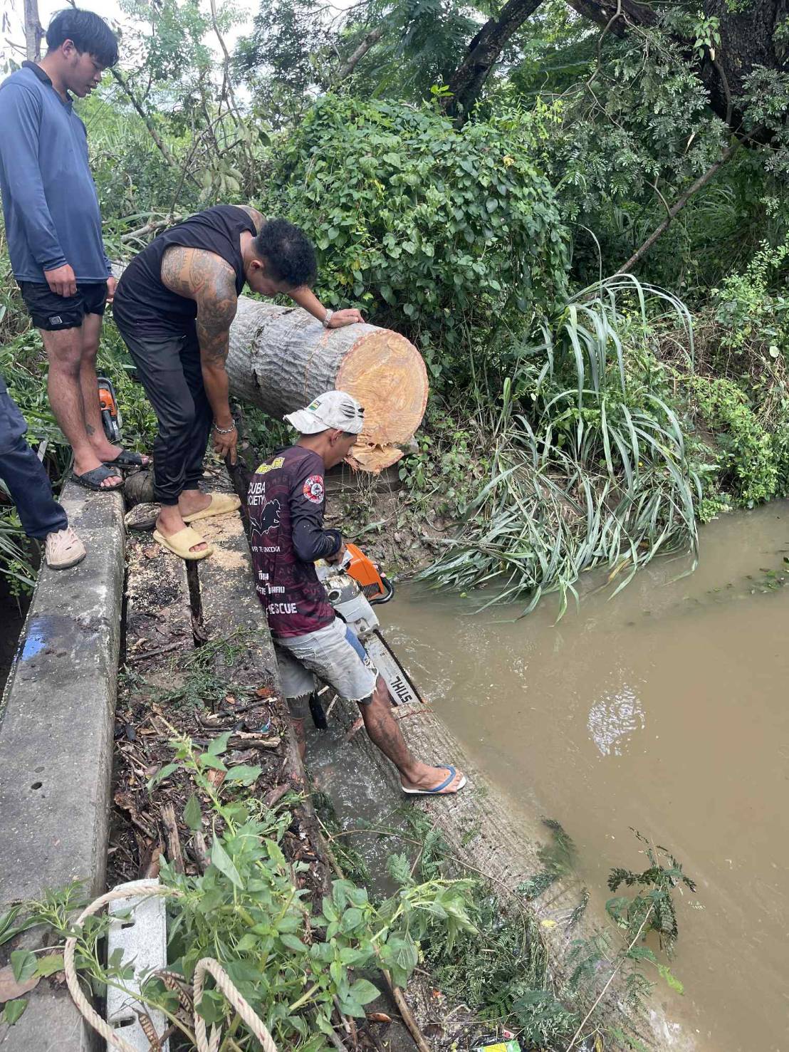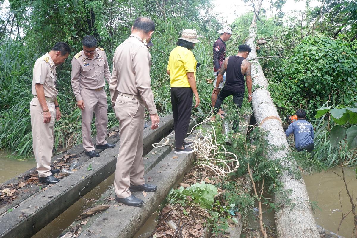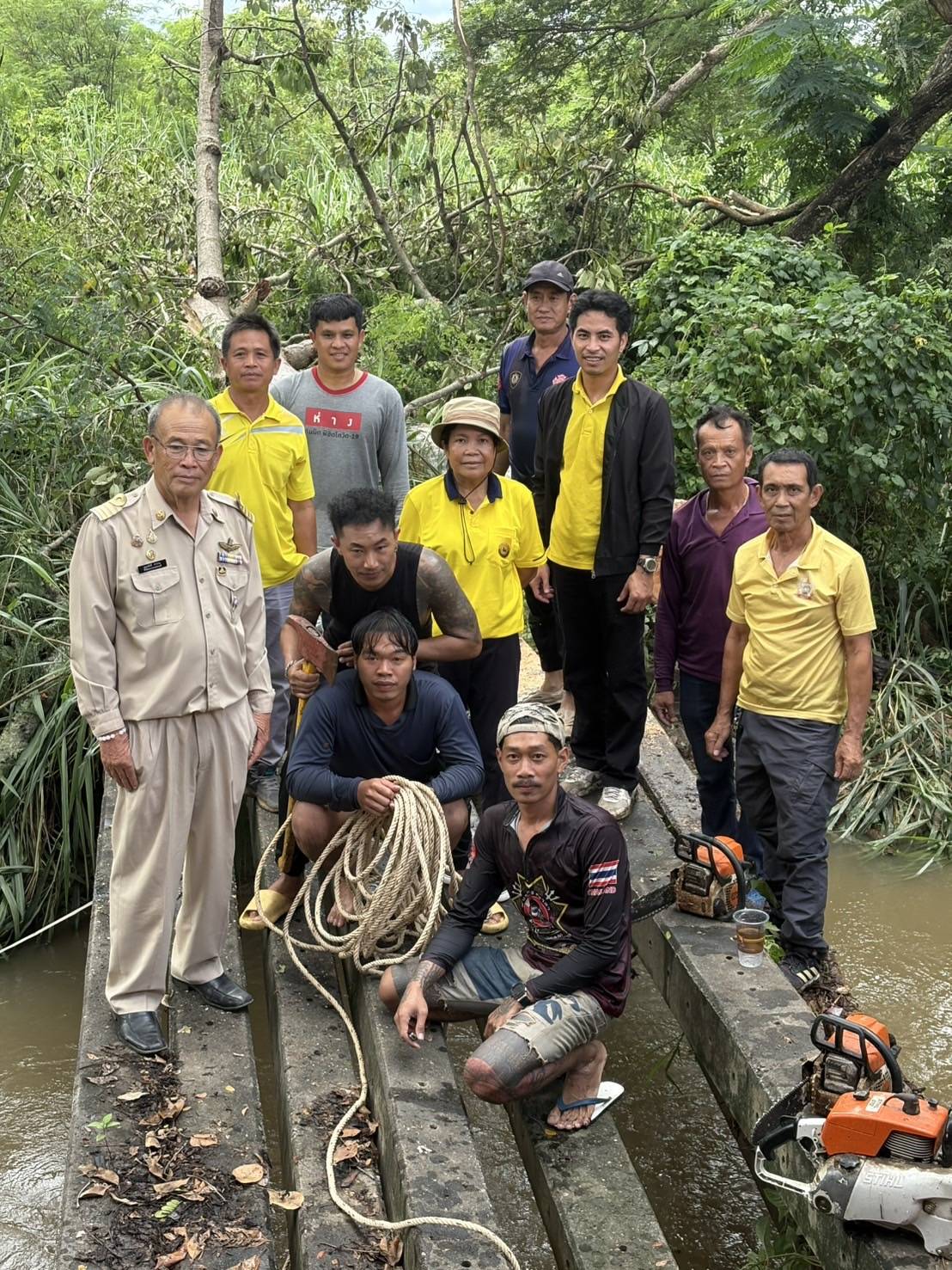 จึงได้ดำเนินการตัดกิ่งไม้ที่โค่นล้มเพื่อเป็นเปิดทางน้ำให้ลำเหมืองให้ไหลได้สะดวก ป้องกันน้ำเออท่วมที่อยู่อาศัยของประชาชนที่อยู่ใกล้ลำเหมืองสาธารณะดังกล่าว