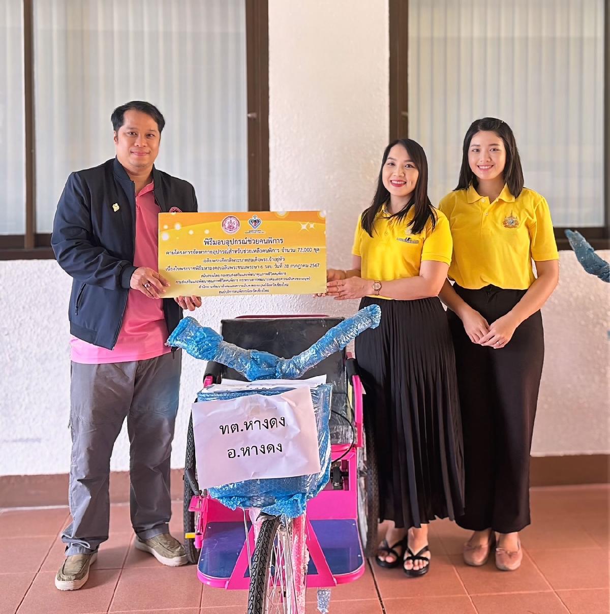 9 กันยายน 2568 นายแสวง ใบงิ้ว นายกเทศมนตรีตำบลหางดง มอบหมายให้ นางสาวณปภา ชญาเที่ยงออน นักสังคมสงเคราะห์ชำนาญการ เป็นตัวแทนเทศบาลตำบลหางดง เข้ารับอุปกรณ์ช่วยเหลือคนพิการ รายการรถสามล้อโยก จำนวน 1 คัน เพื่อมอบให้ผู้พิการในพื้นที่