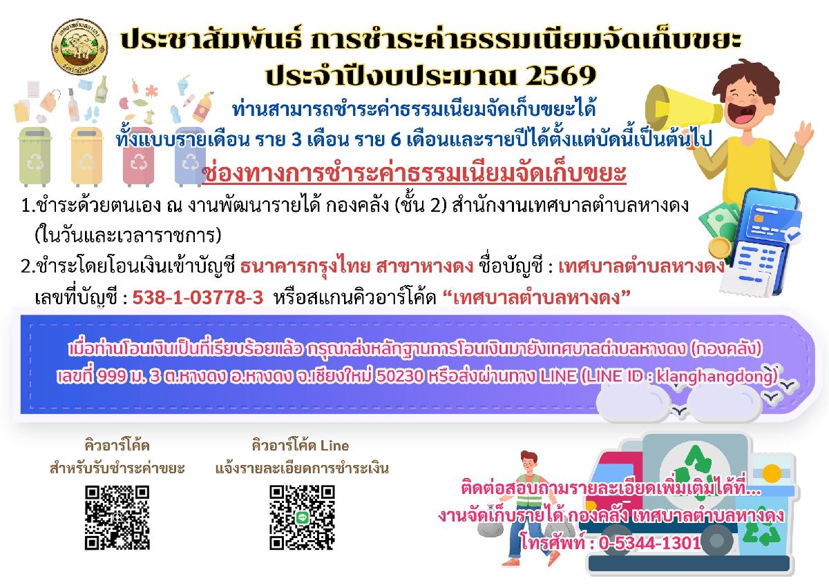 ????????ประชาสัมพันธ์การจัดเก็บค่าธรรมเนียมจัดเก็บขยะประจำปีงบประมาณ 2569 จ้า...????????
