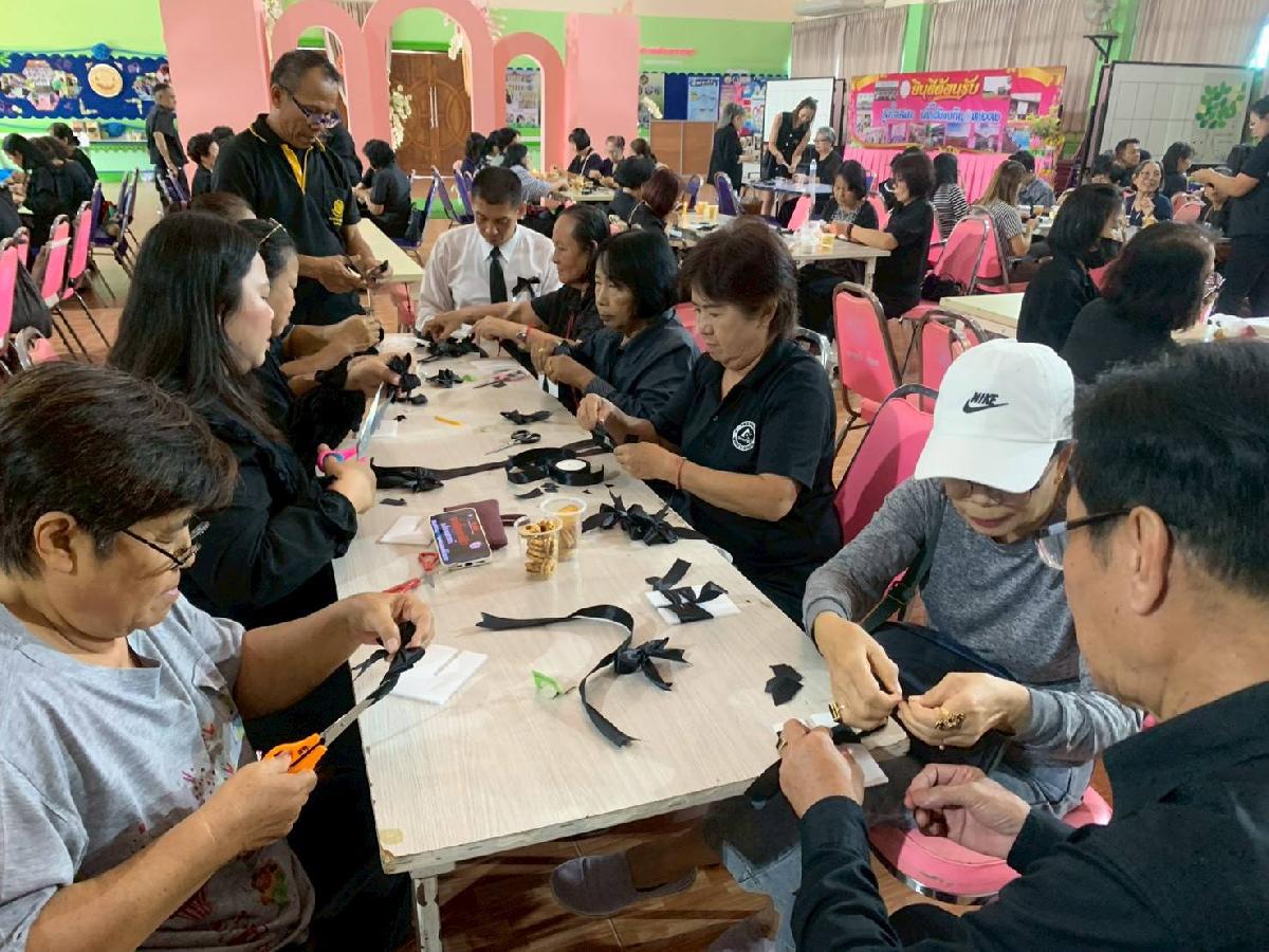 โดยได้รับความอนุเคราะห์คณะวิทยากร จากศูนย์ส่งเสริมการเรียนรู้ (สกร.) อำเภอหางดง ในการเป็นวิทยากรสอนทำริบบิ้นไว้อาลัยในครั้งนี้
