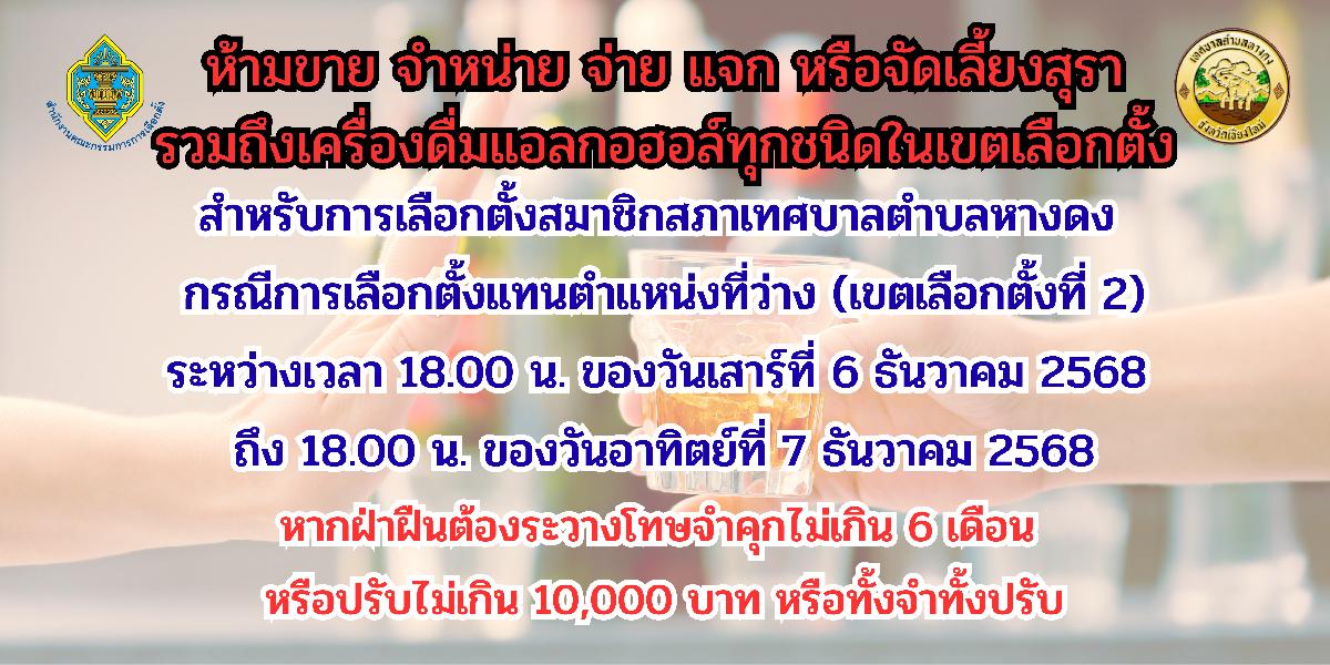 กำหนดห้ามมิให้จำหน่ายเครื่องดื่มแอลกอฮอล์ในเขตเลือกตั้ง ในการเลือกตั้งสมาชิกสภาเทศบาลตำบลหางดง (เขตเลือกตั้งที่ 2) กรณีแทนตำแหน่งที่ว่าง