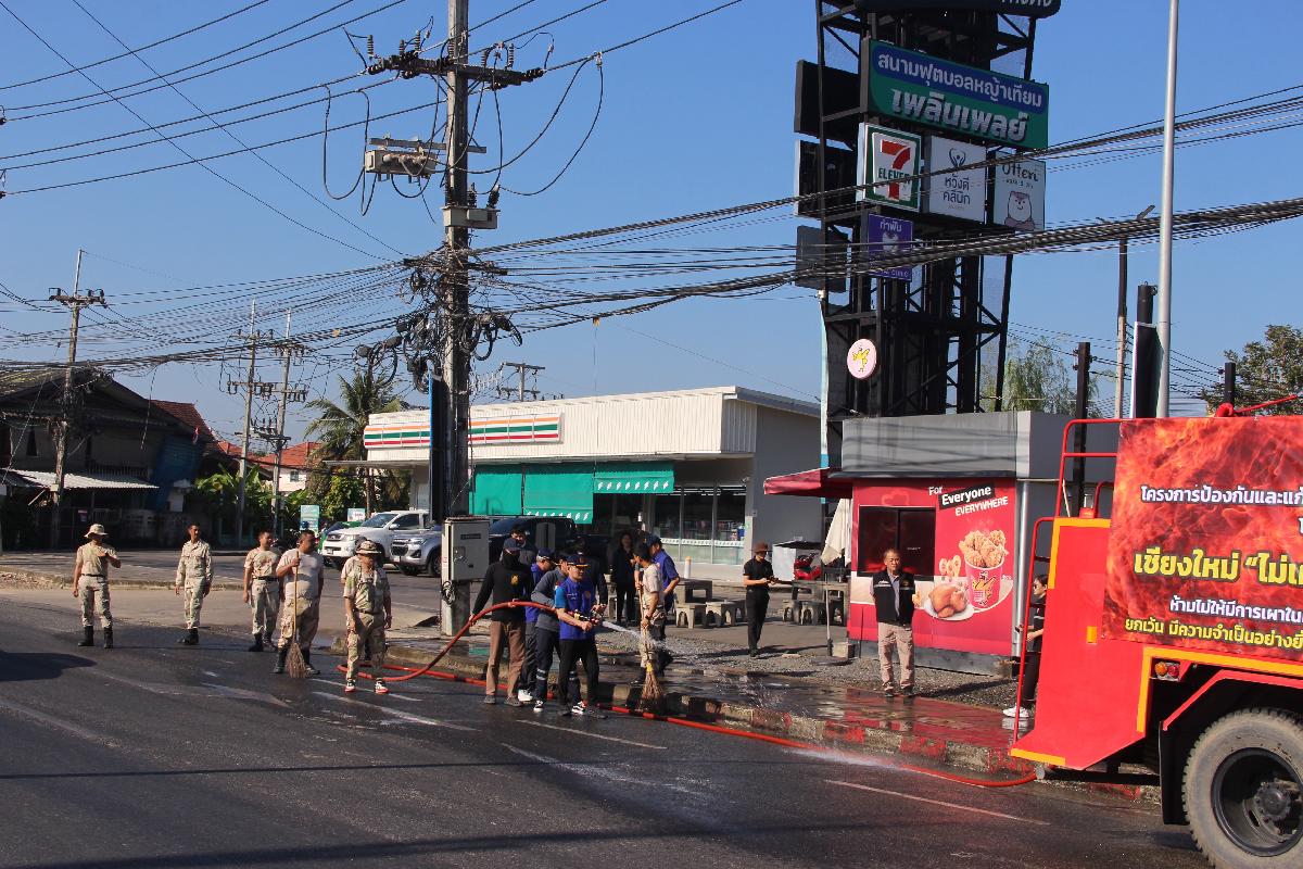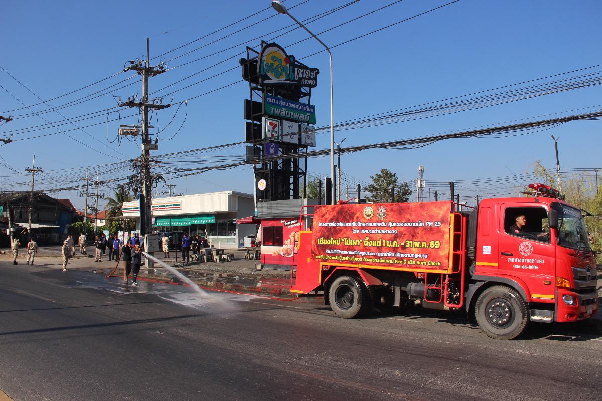 ดำเนินกิจกรรมการบริหารจัดการฝุ่นละอองด้วยมาตรการเชิงรุก โดยการสร้างความชุ่มชื้นในพื้นที่ เพื่อให้เป็นไปตามประกาศจังหวัดเชียงใหม่ เรื่อง มาตรการทางกฎหมายในการป้องกันแก้ไขปัญหาไฟป่าและฝุ่นละอองขนาดเล็ก PM 2.5 ในพื้นที่จังหวัดเชียงใหม่ ประจำปีงบประมาณ พ.ศ. 2569 ตามมาตรการที่ 3 การจัดการพื้นที่เมือง ระบบขนส่ง อุตสาหกรรมและอื่นๆ และมาตราที่ 5 การจัดการบริหารงานภาพรวม เช่น การดำเนินกิจกรรมล้างทำความสะอาดถนน รดน้ำถนน พ่นละอองน้ำ และกิจกรรมอื่นใดที่ก่อให้เกิดความชุ่มชื่นในพื้นที่