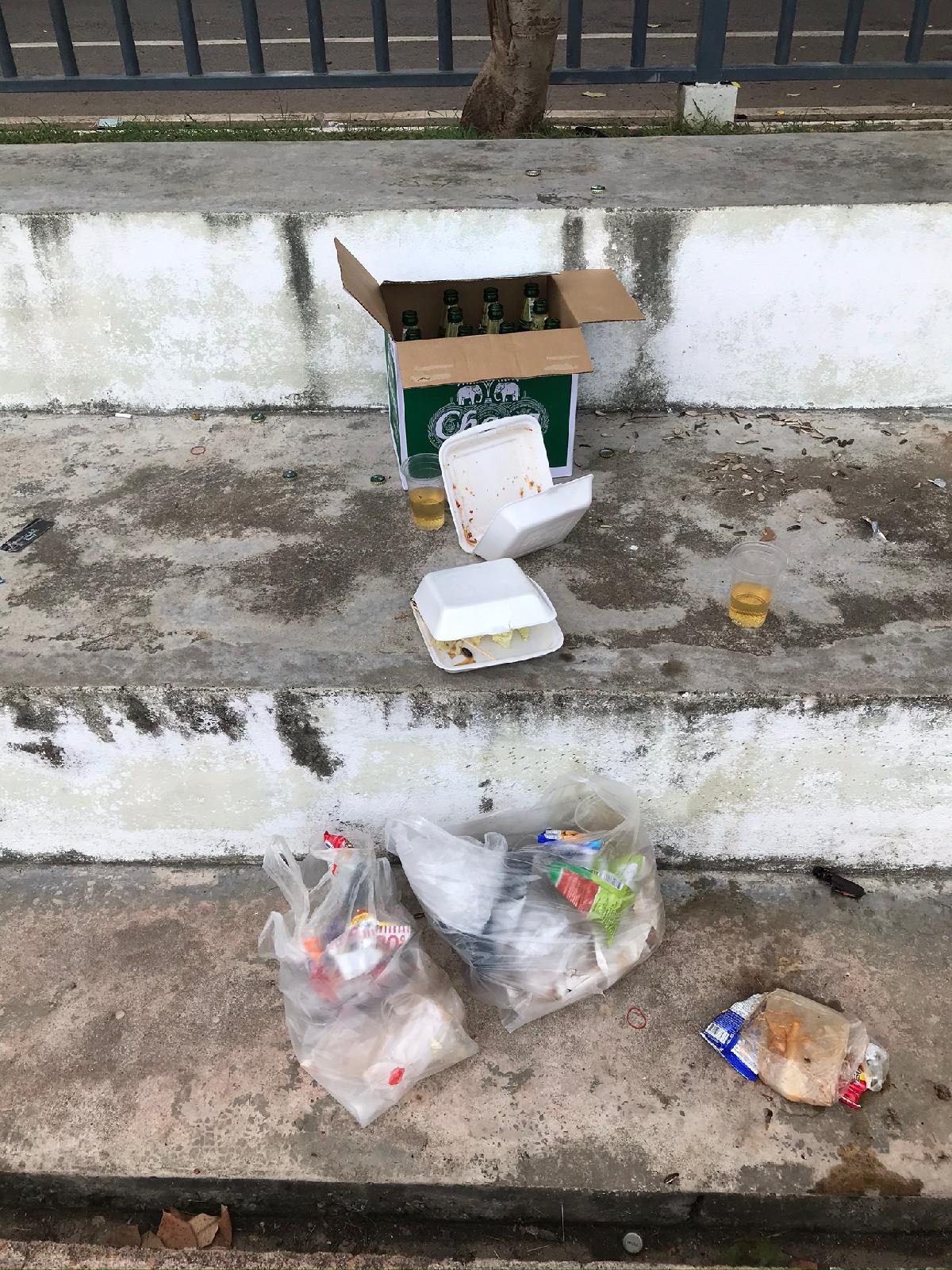 พฤติกรรม ขาดจิตสำนึก กินเหล้าเบียร์ในสนามกีฬา เมื่อวันอาทิตย์ จากการเล่นและเชียร์ฟุตบอลทิ้งเกลื่อน จำนวนมาก