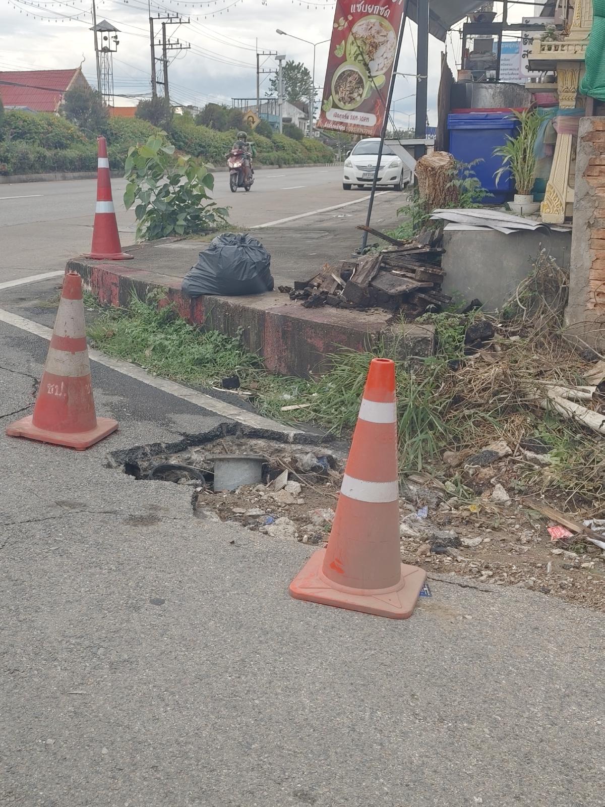 ถนนเป็นหลุมบริเวณทางโค้ง