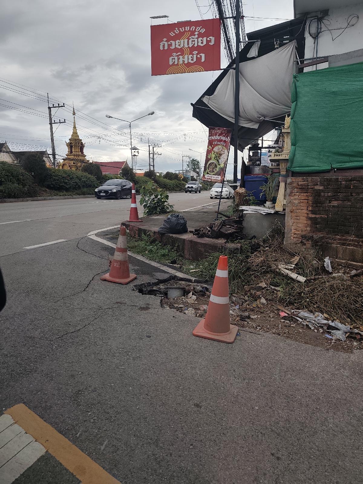 เกิดถนนเป็นหลุมบริเวณต้นซอยข้างร้านนิวัฒน์การไฟฟ้าซึ่งเวลาเลี้ยวโค้งจากถนนใหญ่เชียงใหม่หางดงเข้ามาโดยเฉพาะกลางคืนไม่เห็นอาจเกิดอันตรายและทำความเสียหายกับรถยนต์หรือรถจักรยานยนต์ได้จึงขอความอนุเคราะห์รีบดำเนินการแก้ไขด่วนไม่รู้ว่าเป็นการประปาหรือว่าทางเทศบาลช่วยดูแลด้วยครับ
