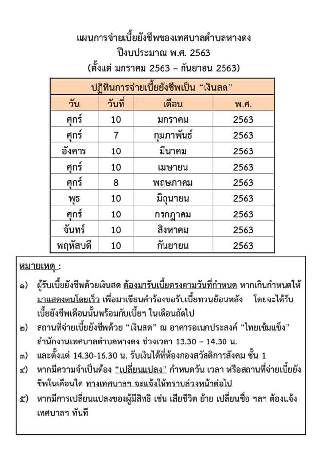 เรื่อง แผนการแจกเบี้ยยังชีพเทศบาลตำบลหางดง