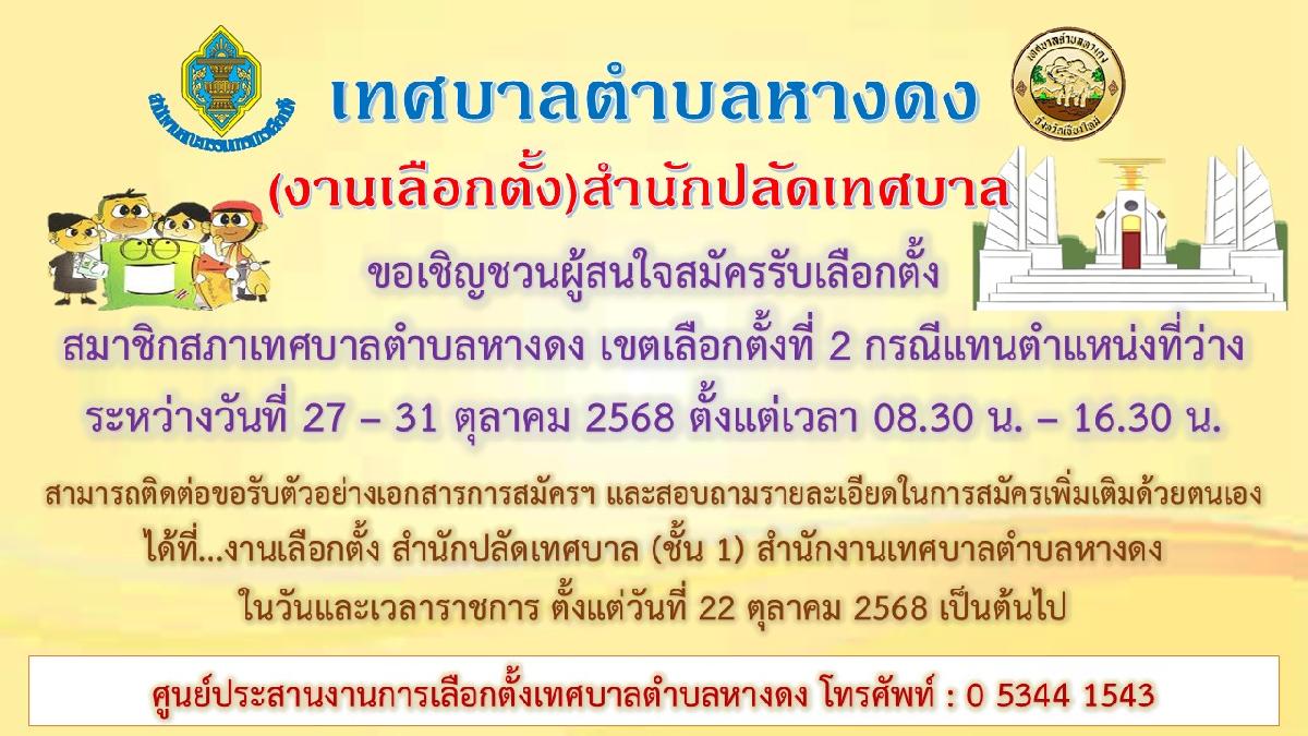 ประชาสัมพันธ์การสมัครรับเลือกตั้งสมาชิกสภาเทศบาลตำบลหางดง เขตเลือกตั้งที่ 2 กรณีแทนตำแหน่งที่ว่าง