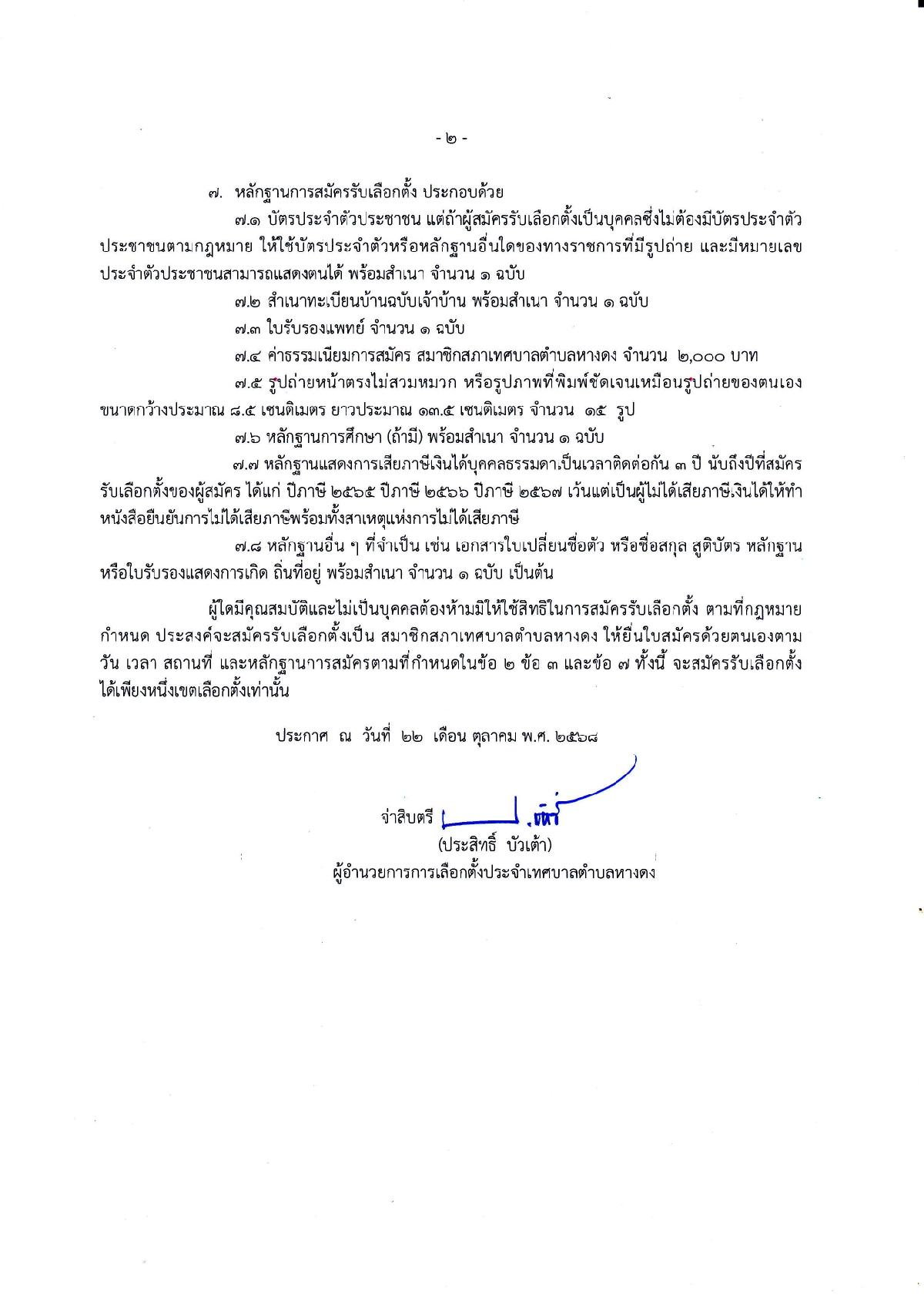 ประกาศผู้อำนวยการการเลือกตั้งประจำเทศบาลตำบลหางดง เรื่อง บัญชีรายชื่อผู้สมัครรับเลือกตั้งสมาชิกสภาเทศบาลตำบลหางดง ที่ได้รับสมัครรับเลือกตั้งและไม่ได้รับสมัครรับเลือกตั้ง เขตเลือกตั้งที่ 2