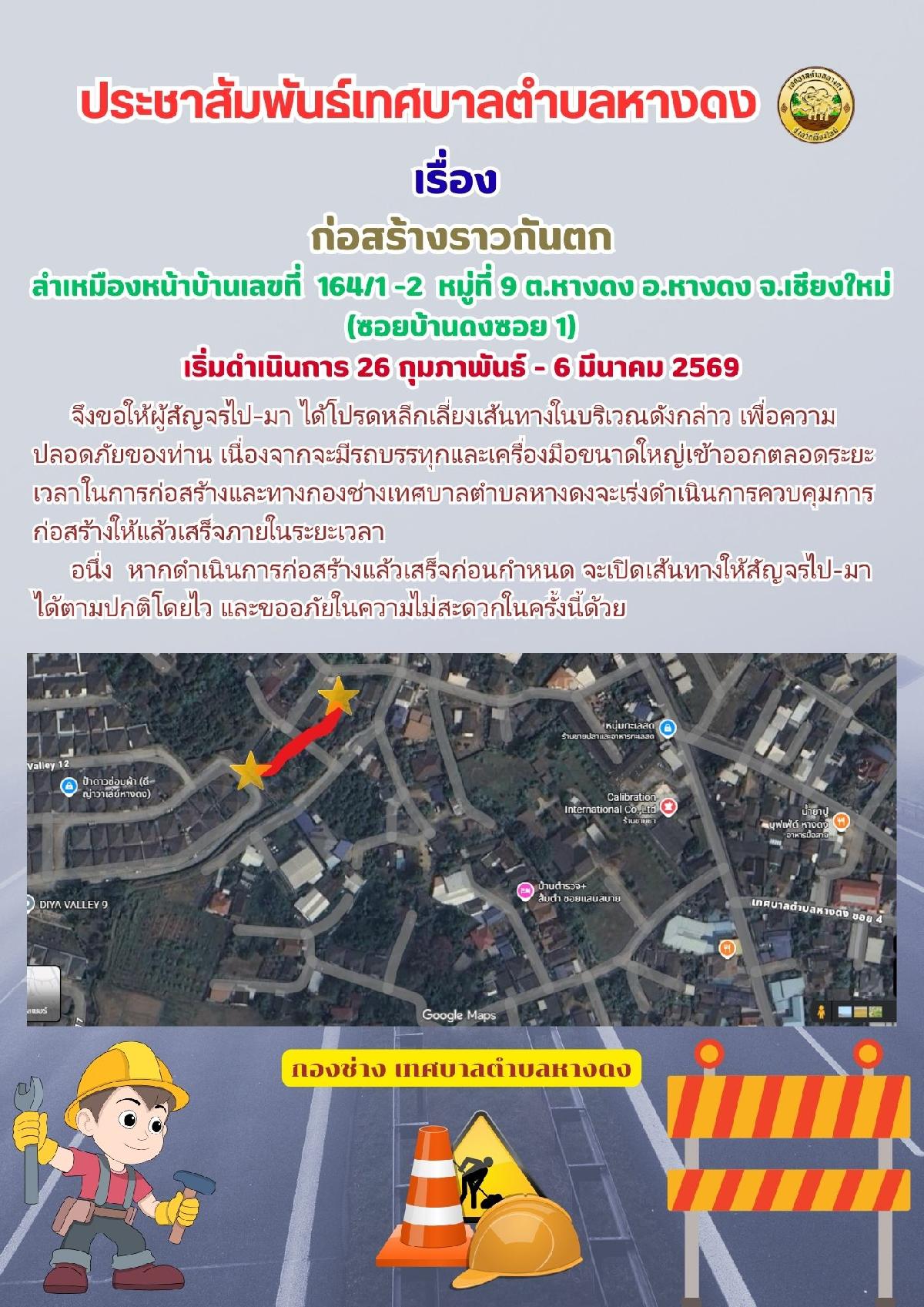 โครงการก่อสร้างราวกันตกลำเหมืองหน้าบ้านเลขที่ 164/1-2 (ซอยบ้านดงซอย1) หมู่ 9 ต.หางดง อ.หางดง จ.เชียงใหม่